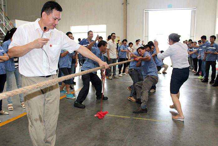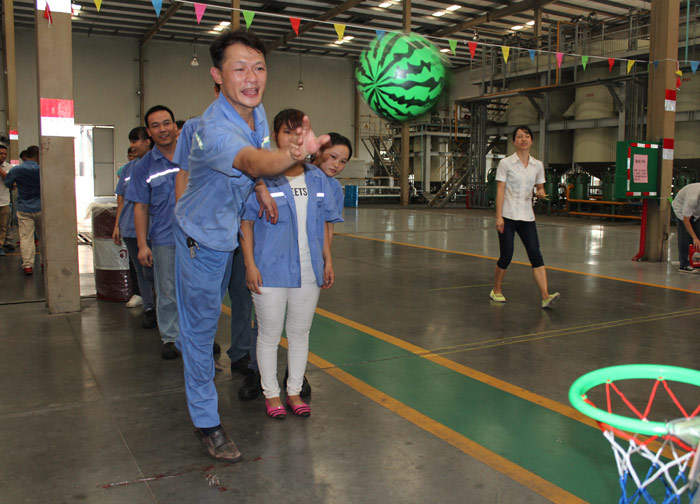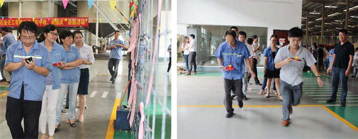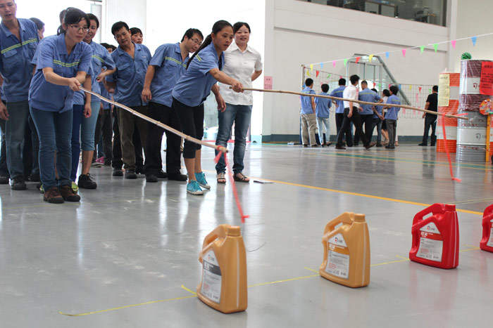 ? ? ? ? 9月25日下午15:00整,随着一声响亮的哨声,游园活动在调油车间正式开始。点球大战、投篮高手、大步流星、眼疾手快、猜谜、绕口令这些趣味十足的游戏让员工们玩的不亦乐乎。彰显团队凝聚力的拔河比赛最为精彩,队员们都咬紧牙关,使出全身力气,都想在紧张激烈的力量拉锯战中胜出,观众的加油呐喊声连绵不断,现场气氛热烈至极,获胜的队伍欢呼雀跃,击掌庆祝。