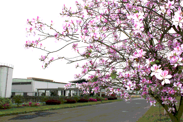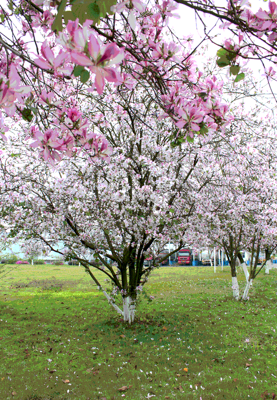 司能石油化工有限公司厂区内的紫荆花一夜之间竞相怒放,真有一番“夜来风雨声,花‘开’知多少”的情趣!