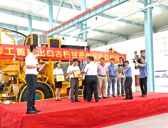 ? ? ? ? 2016年8月18日,广西柳工农业机械股份有限公司首批出口古巴甘蔗收割机交付仪式在其厂区总装车间举行,柳工首批5台甘蔗收获机正式出口古巴。我司副总经理、总工程师吴宪,柳州工厂销售部部长陈远铭作为司能代表应邀参加了此次仪式。