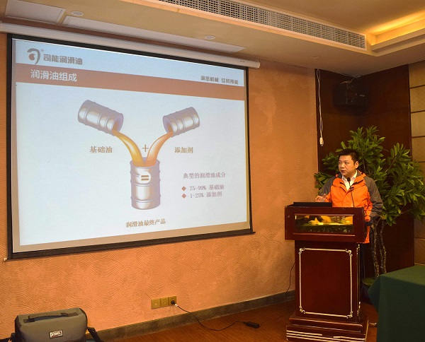 ? ? ? ? 在司能产品线及油品知识介绍方面,司能溧阳应用研究所主任吴浩明指出,司能品牌的原料全部来来自国际知名品牌的基础油和添加剂,每道工序都经过严苛的检验流程,所以大家可以放心大胆的使用。并对明年优化后的产品线进行着重介绍。
