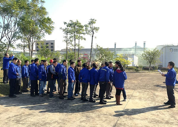 ? ? ? ? 演练开始前,司能石油化工有限公司生产总监廖亮发表讲话。廖总首先感谢柳州市阳和工业新区管理委员会的关心和支持,选择我司开展此次安全生产应急救演练活动。然后介绍公司概况并表示在园区政府的支持下,我公司各项业务得到了很好的发展提升。最后指出,参演人员在演练过程中,要注意安全,认真按照演练计划完成所要求的演练内容;在演练结束后,要对演练过程进行分析和总结,提升公司应对安全生产事故的处理水平。