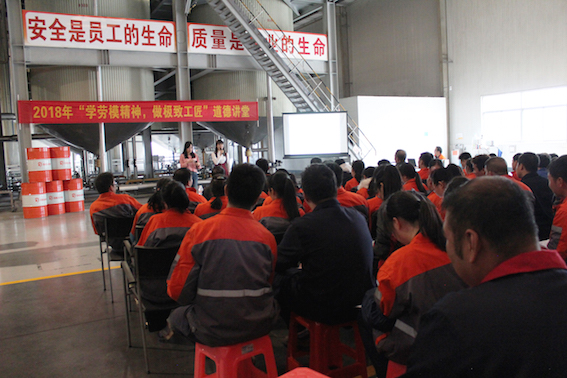 为贯彻落实习近平总书记关于“弘扬劳模精神和工匠精神”的重要指示精神,传播向上向善正能量,公司党支部于2018年11月30日在调合车间开展“学劳模精神,做极致工匠”道德讲堂活动。